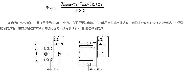 徑向力F2RMax[N]:指垂直作用于軸向力的一個力。它的作用點與軸端有一定的軸向距離(x2),這個點成一個杠桿點。橫向力形成一個彎撓力矩。